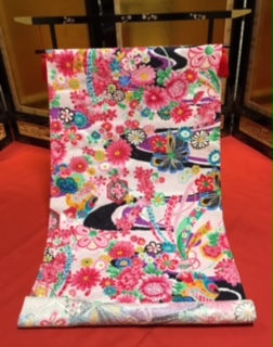画像の帯地は オーダーメイド用の帯地ですので別途かかります (基本的に 片面は無地でおまかせとさせて頂いております) 帯の形は ゆめいろ帯 (リバーシブルタイプの帯) です