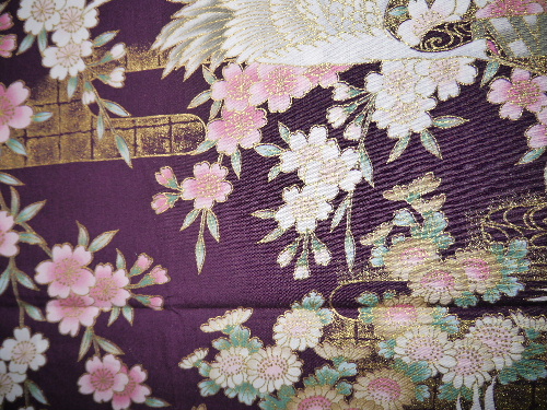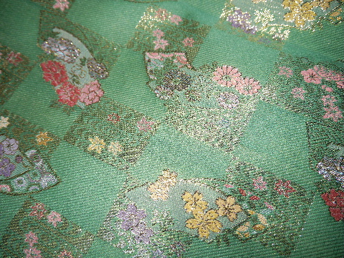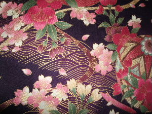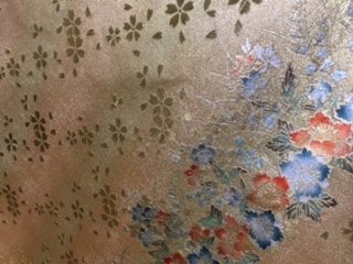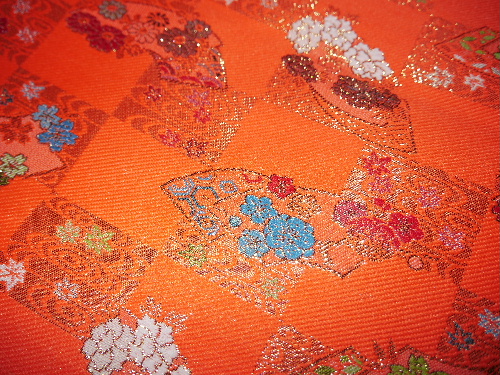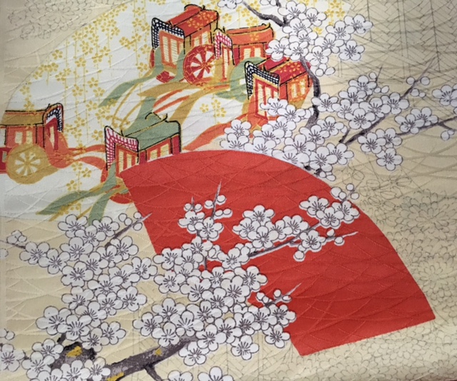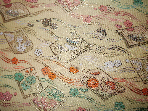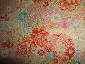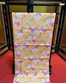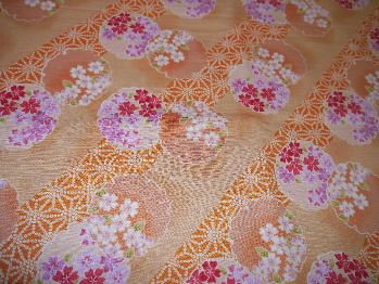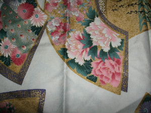 107 正絹 ベージュ 御所車 扇 別途\3500- もともとは オーダーメイド用の生地です