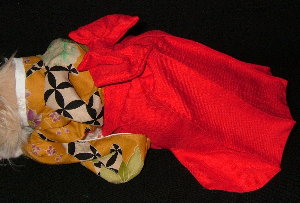 片面は正絹 もう片面は綿ちりめん を使用しております 綿ちりめんは お洗濯等で水に濡れましても 従来のちりめんとは違いまして 縮んだりなど 品質にはまったく問題はございません ですが 表面のデコボコした感触は 消えてしまいます