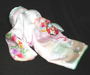 バッグは 帯に取り外し可能 ご入金確認後 即日発送です (送料別) 三姉妹のうち 唯一 正絹です(A面) |