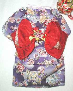 画像は 普通袖ですので 実際には 赤いちょうちょ帯となります (お文庫帯との雰囲気をご覧下さい) |