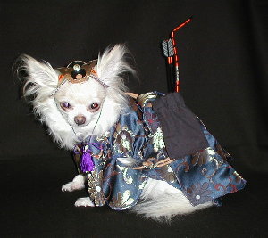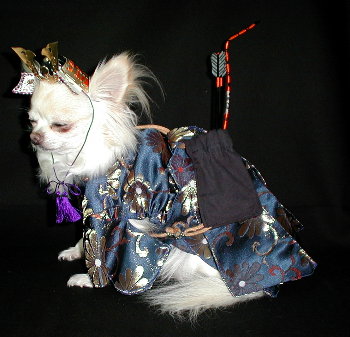 菊 丸 〜きくまる〜 1.7〜1.9kgサイズ 現品限り リバーシブルお着物+はかま 被れる兜・弓矢セット・かぶと置物 おまけ付 消費税込み ¥24990- |