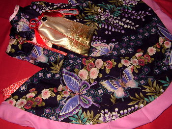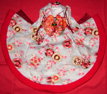 お着物生地は 両方とも 綿です(手洗いで なるべく絞らず お洗濯可能です) 帯のお飾りは ご覧の通り シンプルです