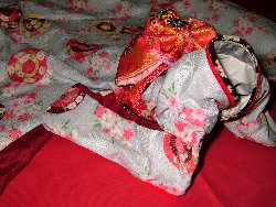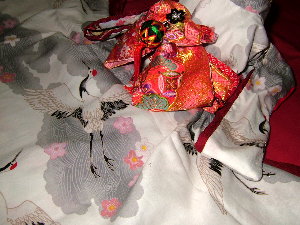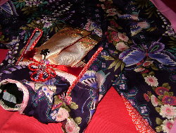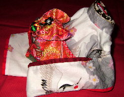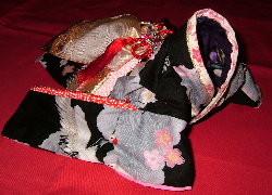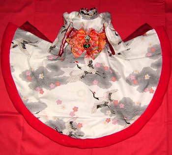 お値段を付けさせて頂きました (2005/8/16) 白 ¥16000- お着物+帯+お姫様セット 破格値です ちなみに 黒は 25000円で御買い上げ頂きました 完売しました
