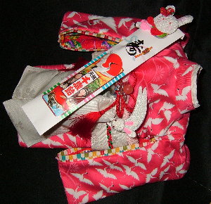 か 2 早めにご用意致しました 七五三に向けたセットです 素材・・・化繊×綿 帯の形・・・まいこ風 千歳飴(玩具) + お着物台付!