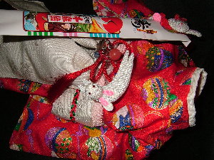大振袖お着物+帯セット 千歳飴(玩具) + お着物台(まっすぐタイプ)付