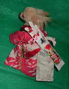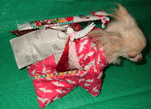 帯に 2ヶ所でくっ付けてありますが 身震いした時に 勢いで取れてしまう 事があるかもしれません |