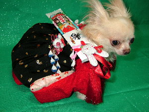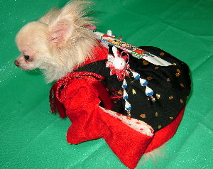 モデルのチワワは 現在 1.7kg モデルにとっては 少し大きめのお着物です