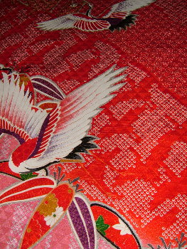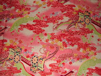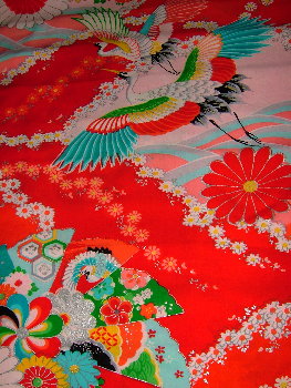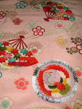 4 化繊 ピンク 扇・鶴柄 完売 |