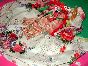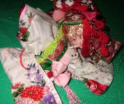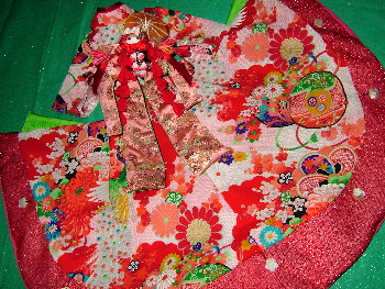 素材・・・人絹×綿 帯の形・・・小町帯 お着物台付 お姫様バージョンセット 完売しました 2007/4/1 UP