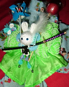 ゆかた帯 蓄光ビーズ付(暗い場所で光ります) 女の子・・・うさぎ飾り+房飾り付 男の子・・・うさぎ飾り+かたな(玩具)付