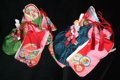 もう片面には 同じ生地を使いましたが それぞれの個性を出すため わざと 柄の入れ方を変えてあります |