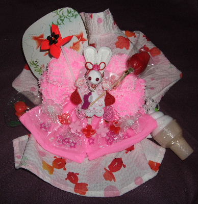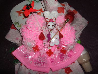 帯は 上記のような絞りタイプだけではなく 人間の帯と同じようなカチッとしたリボンの形もございます 「リボンの形が良い」という記載が無い場合は 絞りタイプにて製作します ***オプション(¥3000-) ほとんどの場合 白になります *** ゆかた・・・そで口・えり元・すそにレース 帯 ・・・・・・・・・・・チェーンとリボンが付きます