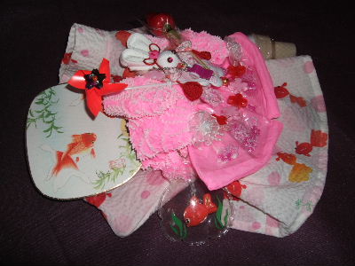 ***スペシャルオプション(¥3800-) 浴衣や帯の色に合わせます *** ゆかた・・・そで口・えり元・すそにレース 帯 ・・・・・・・・・・・チェーンとリボンが付きます ゆかた+帯+ゆかた台 3点セット おまけは うちわ・金魚・ソフトクリーム・カキ氷・風車・イチゴ飴・りんご飴のうち 5種 お選び頂いても構いませんが ご希望に添えない場合もございます オマケはすべて玩具です