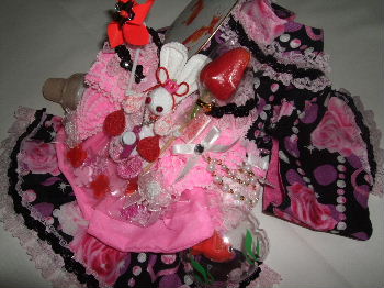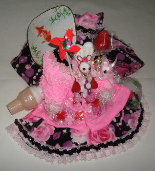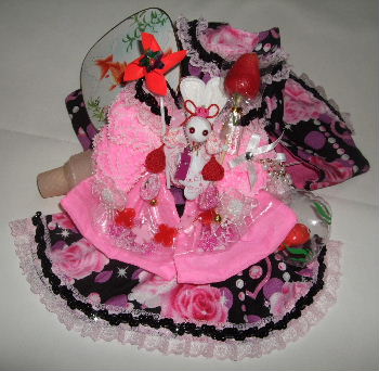 ***オプション(¥3000-) ほとんどの場合 白になります *** ゆかた・・・そで口・えり元・すそにレース 帯 ・・・・・・・・・・・チェーンとリボンが付きます