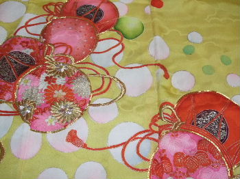 6 黄色地 つづみ柄 刺繍部分有り 完売