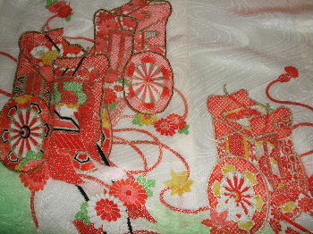 5 白地 御所車柄 金糸のふち縫取り有り お姫様バージョンのみ お受けします
