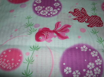 22 ピンク地 金魚柄 (少し大柄) 10 ピンク地 桜・ウサギ柄 11 白地 ほたる・花柄 完売