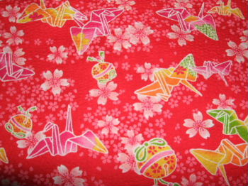 12 赤地 折鶴・桜柄 サイズにより 後1枚の見込み 13 ピンク地 折鶴・桜柄 サイズにより 後1枚の見込み