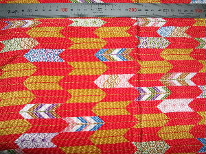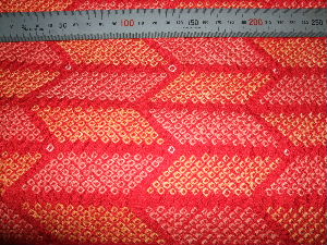 5 赤地 赤・黄 総絞りの矢絣柄(正絹) 生地料金 別途¥1800-