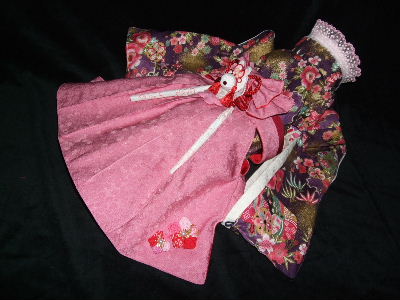 14 黒ピンク地 ラメ・お花柄 別途¥2500- あと一点の見込み 人間用お振袖生地(化繊) 大きい子は無理かもしれません |
