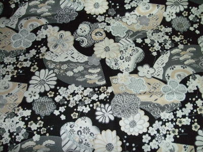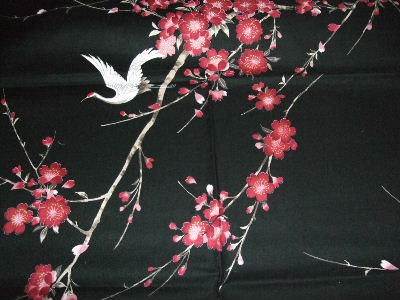 H 黒地 桜・鶴(綿)