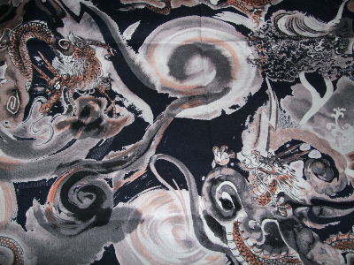 K 黒地 渦巻き・龍(綿) 残りあと一枚 (小さい子で)