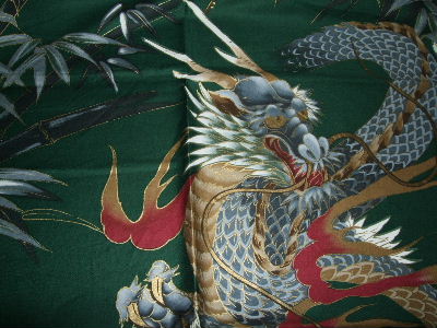 I グリーン地 大柄 龍(綿)