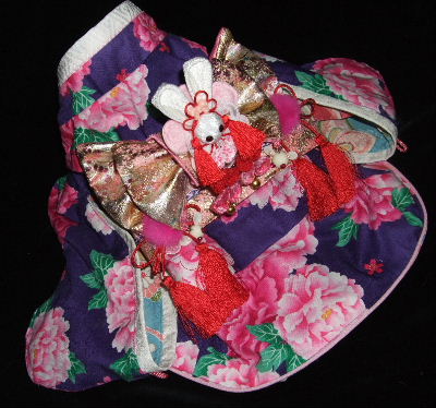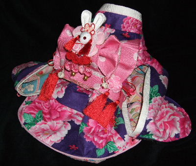 4 オプション 小物のページ ダックスの場合は すべて舞袖とさせて頂きます 足の長い犬種 (プードルちゃん等) には 必要ないと思われます 5.もう片面のお着物について ●1つだけしか生地をお選び頂いていないお客様の場合は もう片面のお着物は綿でお任せになります 素材のご希望ございましたらお書き下さい 正絹・・・プラス¥4000- 化繊・・・プラス¥3000- ●無地か 柄物か どちらをご希望か 具体的なお好みの色や柄等一切指定できません あくまでもおまかせなのですから こちらにおまかせ願います どうしてもご希望があるのでしたら 片面をオーダーメイドでお受けします ●嫌いな色・愛犬に似合わない色等ございましたら 1つ2つまでなら お書き下さい ただし 嫌いな柄まではお聞きできません 地色のみです 2013年向け 女の子お着物セット (お姫様無しのタイプ)