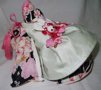 NO.1 四季小町 お被布セット 完売しました 1.4〜1.6kg(チワワちゃん等 普通体形のわんちゃん用) 大人気だった 四季小町シリーズ (人間用お着物生地) 四季小町× 黒地(鶴・御所車・扇・大輪のお花柄) ただし 初めてのお客様には ディスプレイ台付きでの販売となります お着物・お被布 共にリバーシブル 4通りの着せ方が可能です 2012.11.9 UP