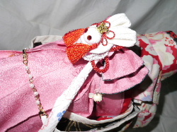 髪 飾 り 色は 赤・ピンク・紫 ございます お好きなお色をご指定下さい 個々のお着物に合うように 個性的に仕上げておりますので 付いている お飾りは 画像の物とは異なる事もございます