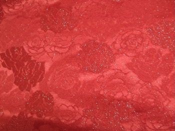 ち) 赤地 薔薇柄 ラメ入り 生地料金 ¥3000-