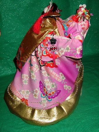激安! ディスプレイ台付 お着物セット 帯 バージョンアップ (お着物(綿×モスリン)・お姫様(チェーン飾り付)・小町帯(しごき付) のセット) 1.0〜1.5kg用 6周年記念セール その1完売 |