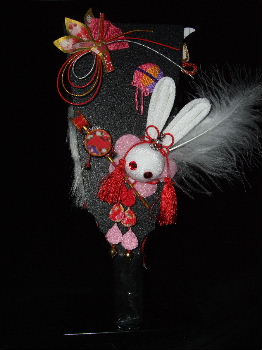 ショール うさぎ付ショール うさぎは 取り外し可能 (うさぎを外すと 左の画像になります) O リバーシブル羽子板 その2 (約24×10cm) 2008/9/10 UP 羽子板 + 羽子板立て Nより かなり小さいです