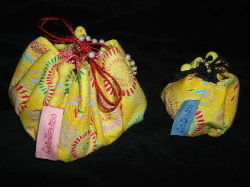 主に ゆかたセットの小物 としてお作りしております 玩具コスメセット付 rib がま口バッグやきんちゃくバッグを過去にご注文下さった事がある場合は 違うタイプのコスメをお入れしたいため 中身のコスメがどんな物だったか教えて下さい (お好きなお色(赤系・黒系・ピンクなど)をお選び下さい お着物との共布での製作も致します) 2004/12/27 UP