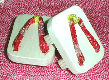 ↑ ちりめんの鼻緒です |