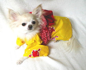 ついに出ました! WANちゃんの浴衣で 初めての 蓄光タイプ! 花火大会等 夜のお出かけには 金魚の縁取りが光ります