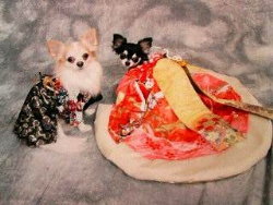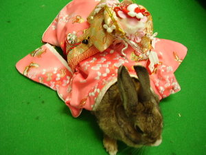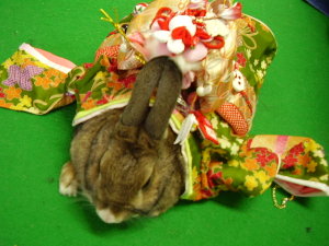うさぎさん用に 型紙を立ち上げ 初挑戦させて頂きました 「徐々に慣れさせる為に 上から羽織らせたのみにし わざと袖を通していません」 (ご家族談)