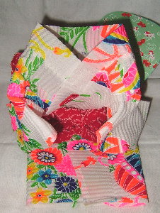 サンプル ほ ¥4580− 女の子用 (税込¥4809-) ガーゼ裏地付ゆかた+帯+小物 2.0〜2.2kgのお子様用 完売 |